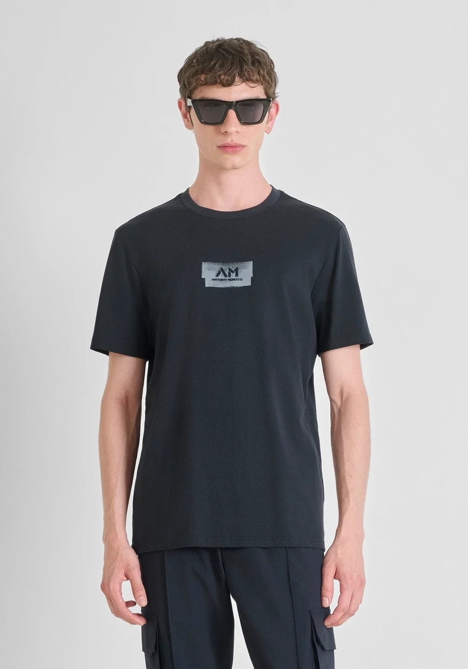 Heren T-Shirt Antony Morato Lettering Logo | Marine