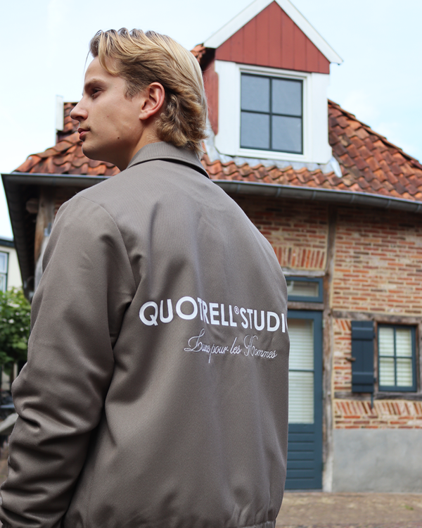 Het Quotrell Studios-jack is perfect voor het huidige seizoen. Het jack heeft een groot artwork op de rug en een klein bijpassend artwork op de borst met de tekst 'Luxe pour les hommes' geborduurd. De hals is subtiel voorzien van het kenmerkende Quotrell-logo. Naast het neklabel vind je een unieke code geïnspireerd op het leger. Het Studios-jack past perfect bij al je andere favoriete Quotrell-items.