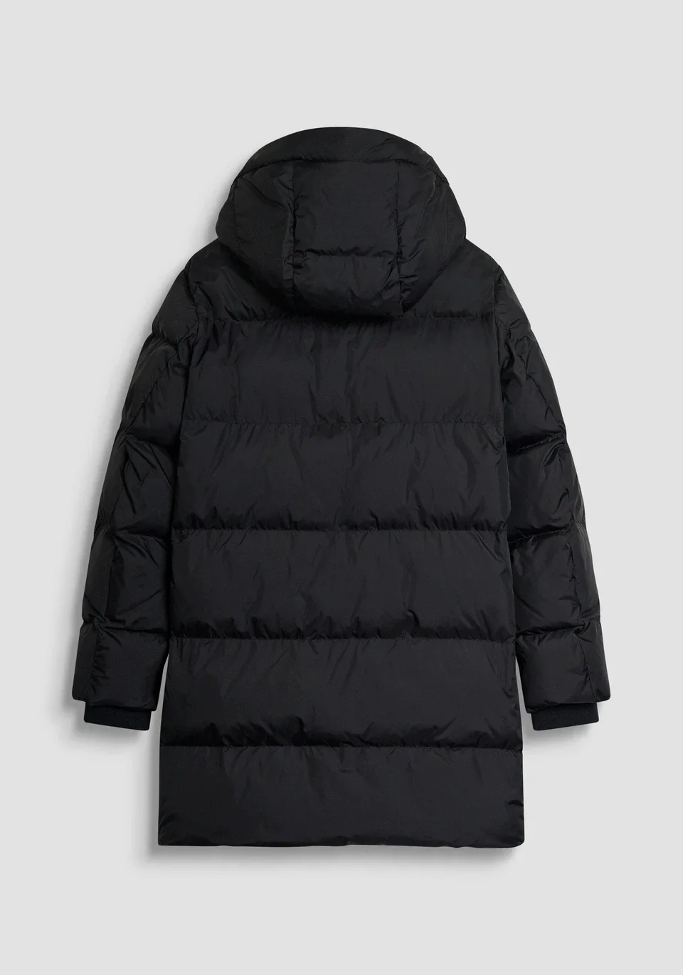 Donsjack in parka-stijl met een relaxte pasvorm en een middellange lengte, voorzien van zachte en lichtgewicht DuPont Sorona® eco-vulling, bekend om zijn hoge technische prestaties op het gebied van stretch, vormbehoud en bovenal uitstekend thermisch comfort. De stof is ontworpen voor een soepele en compacte look. Het kledingstuk heeft een afneembare capuchon, een tweewegritssluiting aan de voorkant en twee grote voorzakken met klep en knopen. Twee extra ritszakken met paspel op de borst. Elastische binnenmanchetten aan de mouwen verhogen het comfort. Een rubberen logopatch is op de mouw aangebracht. Dit donsjack is de perfecte metgezel, zelfs op de koudste dagen.