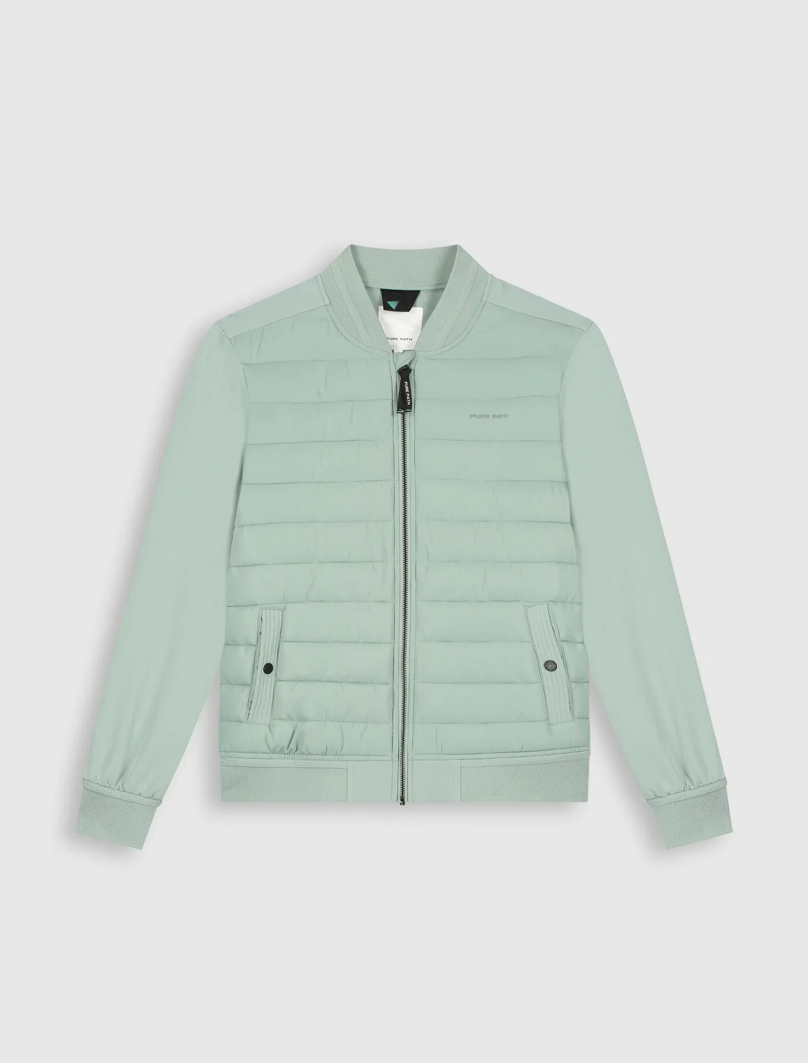 De gewatteerde softshelljas heeft een normale pasvorm en is gemaakt van een flexibele mix van 92% polyester en 8% elastaan met een softshell buitenkant die soepel meebeweegt. De jas is gevoerd met 100% polyester voor lichte warmte en biedt een perfecte balans tussen bescherming en comfort tijdens de wisselende lente- en zomermaanden. De jas is voorzien van een ritssluiting, voorzakken met knoopsluiting en een binnenzak voor dagelijks gebruik. Geribde manchetten en een geribbeld lijf zorgen voor structuur, terwijl een opstaande kraag en een logo-badge op de mouw de jas een verfijnde, moderne uitstraling geven.