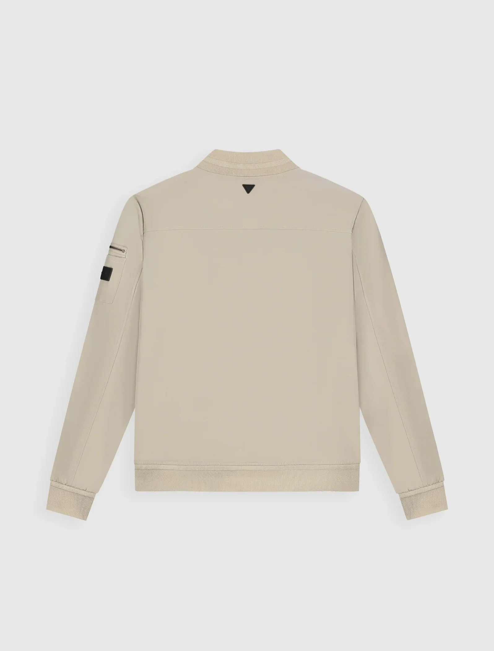 De gewatteerde softshelljas heeft een normale pasvorm en is gemaakt van een flexibele mix van 92% polyester en 8% elastaan met een softshell buitenkant die soepel meebeweegt. De jas is gevoerd met 100% polyester voor lichte warmte en biedt een perfecte balans tussen bescherming en comfort tijdens de wisselende lente- en zomermaanden. De jas is voorzien van een ritssluiting, voorzakken met knoopsluiting en een binnenzak voor dagelijks gebruik. Geribde manchetten en een geribbeld lijf zorgen voor structuur, terwijl een opstaande kraag en een logo-badge op de mouw de jas een verfijnde, moderne uitstraling geven.