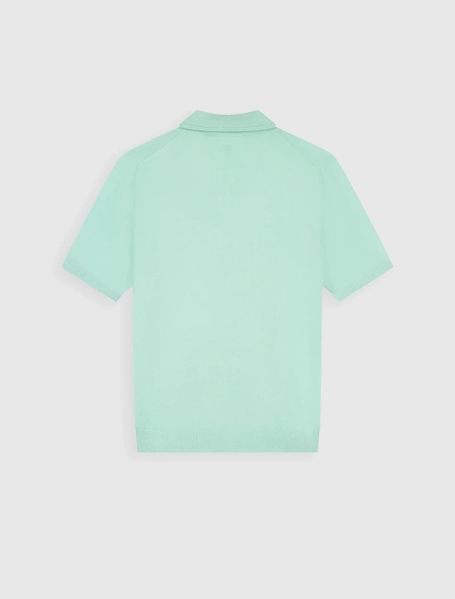 The Half-zip Flat Knit Polo comes in a regular fit, crafted from a refined blend of 80% viscose and 20% nylon in a smooth flat knit structure. The viscose gives the fabric a soft, fluid handfeel with a subtle sheen, while the nylon adds strength and shape retention, resulting in a clean and elevated finish. Designed with a polo collar and half zip closure, and finished with ribbed sleeve and body cuffs for a defined silhouette. A subtle signature triangle branding marks the back neckline.
