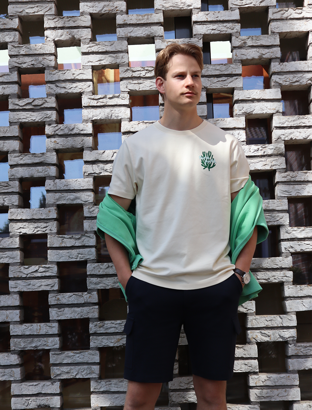 Het Pure Path Coral Reef T-shirt heeft een normale pasvorm met een klassieke ronde hals en is gemaakt van 100% katoenen interlockjersey voor een soepel en gestructureerd gevoel. Een koraalrifprint siert de borst, in een grotere versie op de rug. Op de rug ontvouwt het kunstwerk zich als een gelaagde compositie waarin organische vormen over het oppervlak vloeien. De pigmentprint zorgt voor een zachte en natuurlijke basis, terwijl de reliëfprint diepte en contrast toevoegt. Een kledingstuk dat beweging en textuur vastlegt in een natuurlijk ritme.