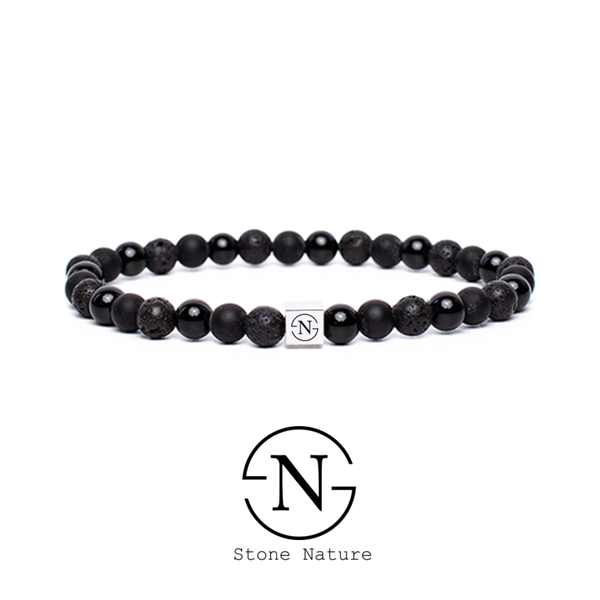 Stoere Triple Black armband is een mooie combinatie van 6mm lava, mat zwart en glimmende jade natuursteen kralen. Een echte MUSTHAVE voor iedere man!! De vierkante Stainless Steel bedel, met het Stone Nature logo, geeft de armband een tijdloos uiterlijk. De triple black armband laat zich door zijn veelzijdigheid makkelijk combineren met vele andere armbanden uit onze collectie!